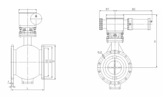 公稱(chēng)通徑(mm) | L | D | D1 | D2 | b | n | d | H | B1 | B2 |