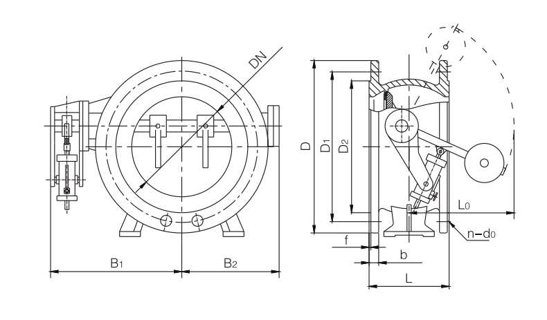 2.外掛式阻尼缸緩閉性能優(yōu)良,不受管道中介質(zhì)的影響;蝶板先速關(guān)后慢關(guān),可防止破壞性水錘的產(chǎn)生;啟閉平穩(wěn)、無(wú)震動(dòng)、無(wú)噪音。